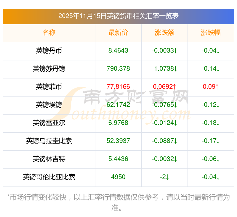 2025年11月15日英鎊相關(guān)匯率查詢