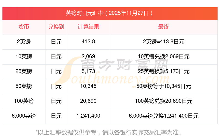 英鎊匯率:今日英鎊對(duì)日元匯率是多少?2025-11-27