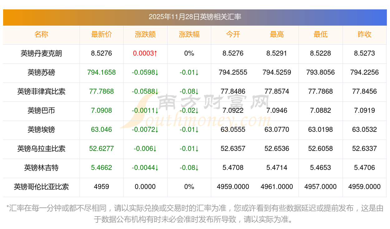 2025年11月28日英鎊相關(guān)匯率查詢