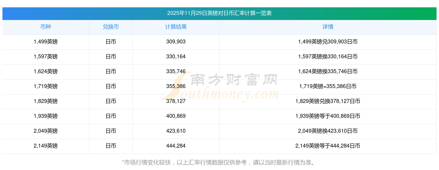 英鎊匯率:今日英鎊對(duì)日元匯率是多少?2025/11/29