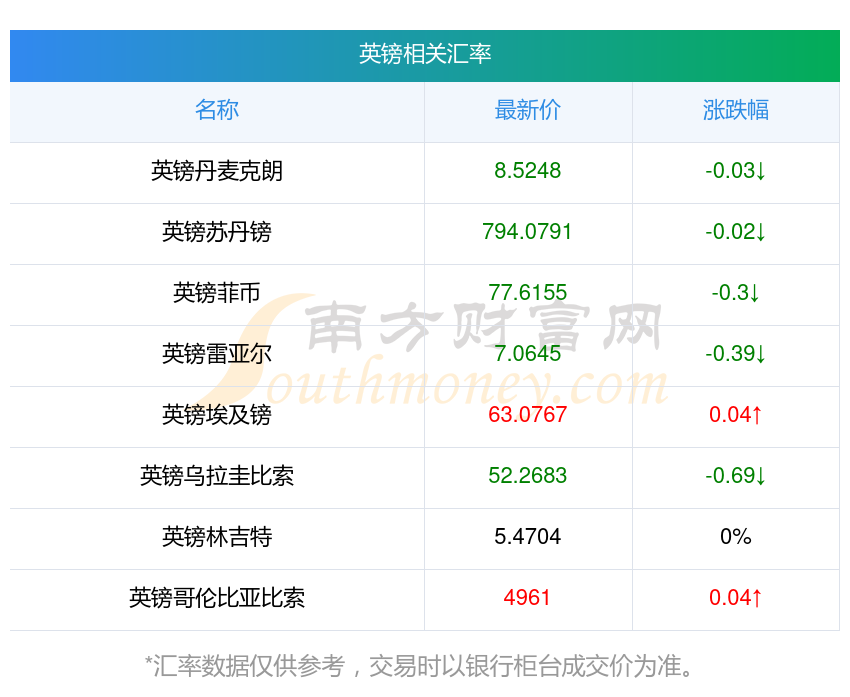根據(jù)2025年11月29日匯率,英鎊兌換盧布匯率最新價102.590600,今開價103.2058,昨收價102.5906,最高價103.6703,最低價102.0280。