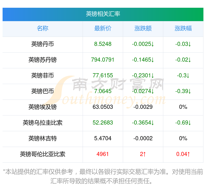 2025年11月29日英鎊相關(guān)匯率查詢