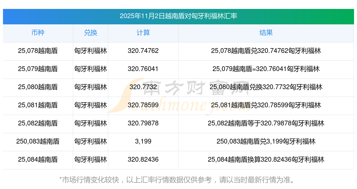 今天匯率計(jì)算:61越南盾等于多少匈牙利福林的?(2025年11月2日)
