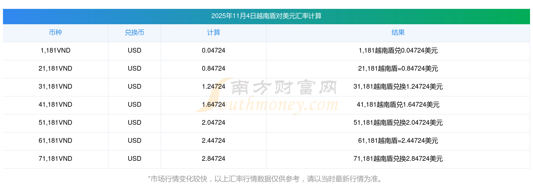 今天匯率更新!2025年11月4日95越南盾兌換美元是多少?