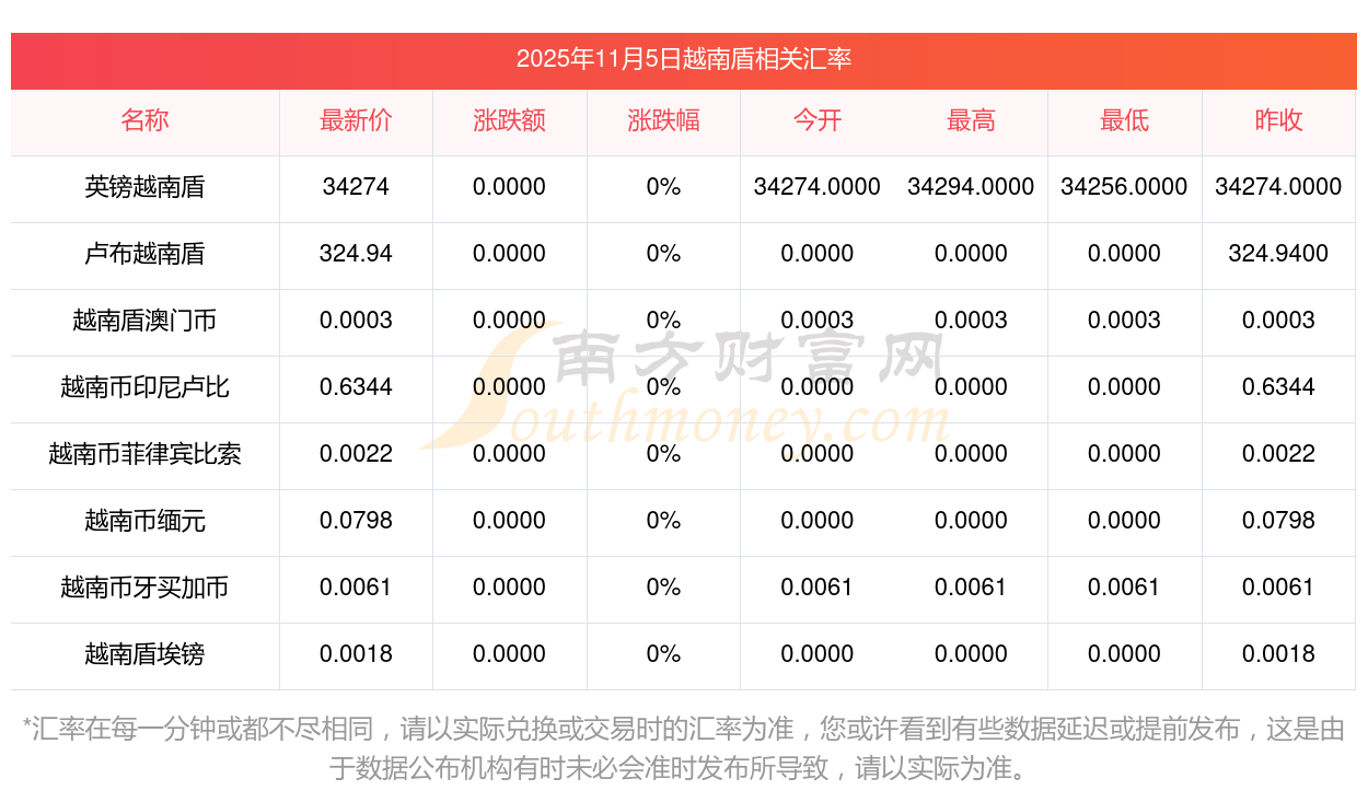 根據(jù)2025年11月5日匯率計(jì)算,越南盾兌換摩洛哥迪拉姆匯率最新價(jià)0.000354,今開價(jià)0.0004,昨收價(jià)0.0004,最高價(jià)0.0004,最低價(jià)0.0004。