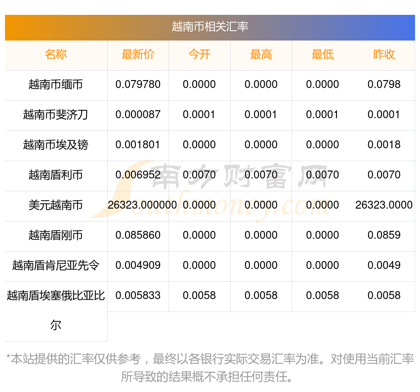 南方財富網(wǎng)為您提供越南幣對南特匯率最新價格詳情。