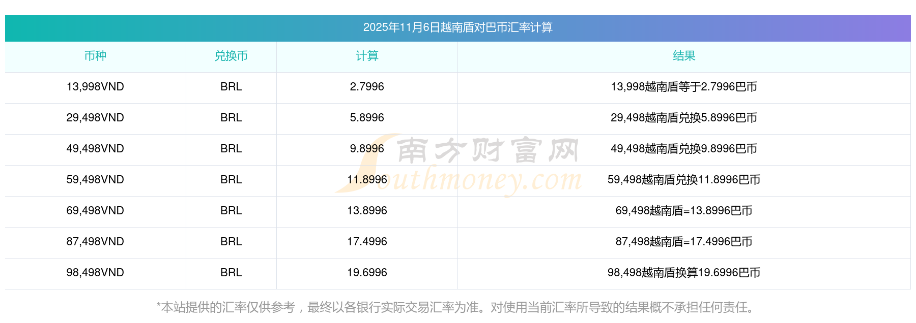 2025年11月6日越南盾對巴幣的匯率是多少?