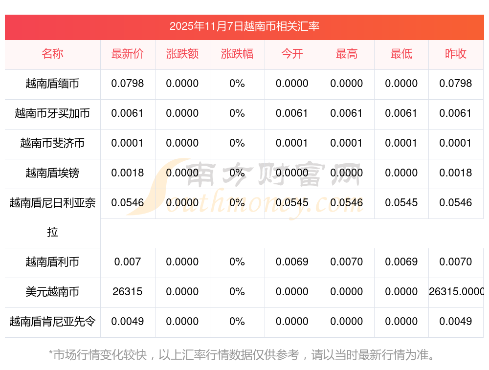 2025年11月7日越南幣相關(guān)匯率查詢(xún)