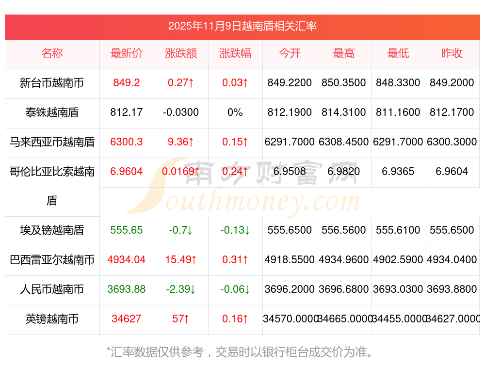 根據(jù)2025年11月9日匯率,越南盾兌換丹幣匯率最新價(jià)0.000245,今開價(jià)0.0002,昨收價(jià)0.0002,最高價(jià)0.0002,最低價(jià)0.0002。