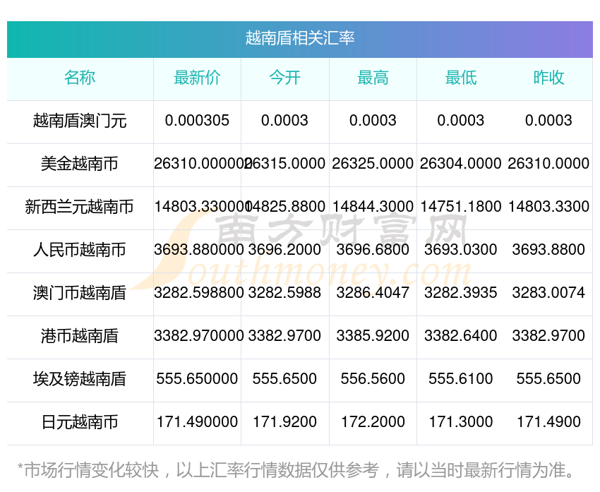 南方財(cái)富網(wǎng)為您提供越南盾對典幣匯率最新價(jià)格詳情。