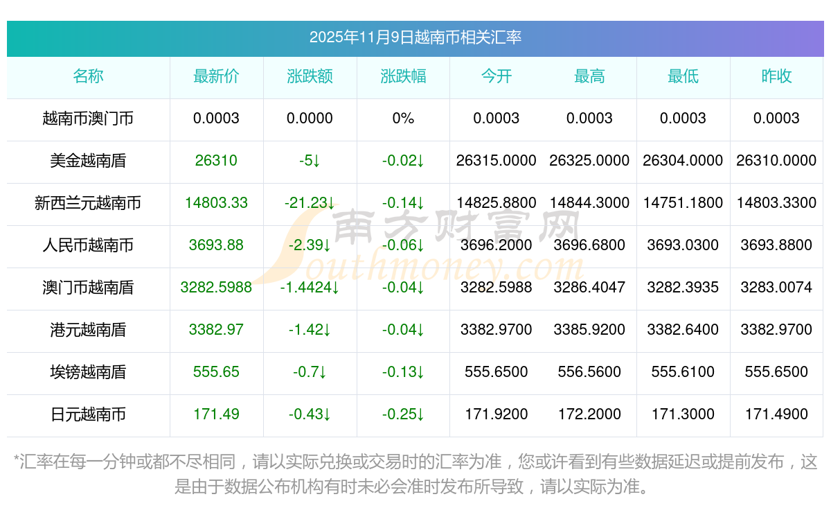 2025年11月9日越南幣相關(guān)匯率查詢