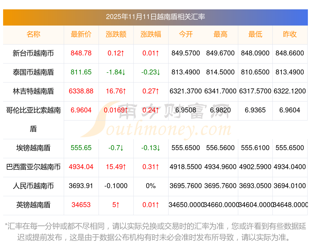 根據(jù)2025年11月11日匯率計(jì)算,越南盾兌換福林匯率最新價(jià)0.012614,今開價(jià)0.0126,昨收價(jià)0.0126,最高價(jià)0.0126,最低價(jià)0.0126。