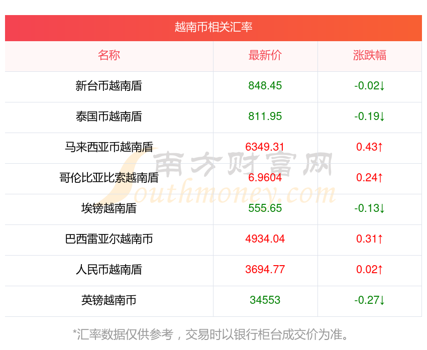 南方財(cái)富網(wǎng)為您提供越南幣對澳元匯率最新價(jià)格詳情。