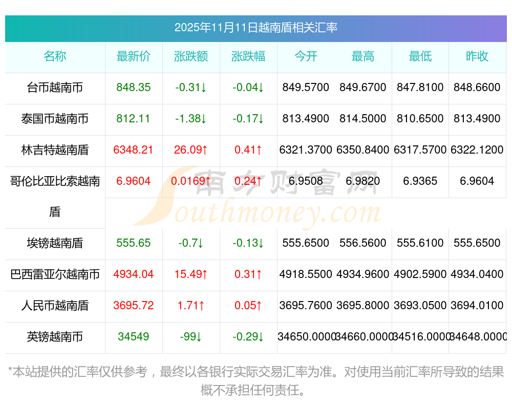 根據(jù)今天2025年11月11日匯率計(jì)算,VND兌換NZD匯率最新價(jià)0.000067,今開(kāi)價(jià)0.0001,昨收價(jià)0.0001,最高價(jià)0.0001,最低價(jià)0.0001。