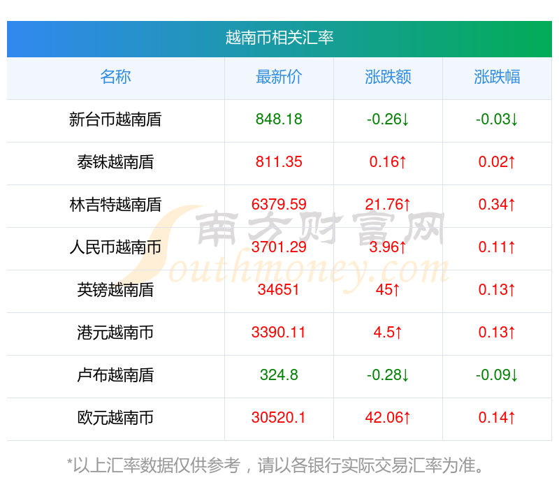 南方財(cái)富網(wǎng)為您提供越南幣對丹幣匯率最新價(jià)格詳情。