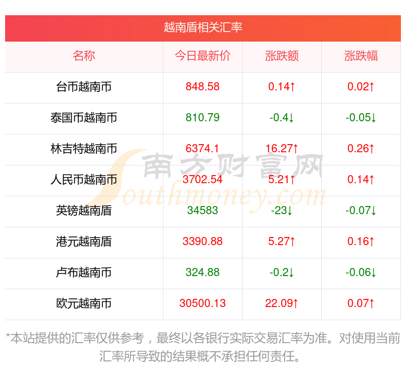 南方財富網(wǎng)為您提供越南盾對比索匯率最新價格詳情。