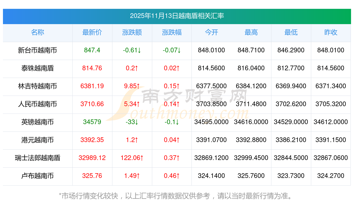 2025年11月13日越南盾相關(guān)匯率查詢(xún)