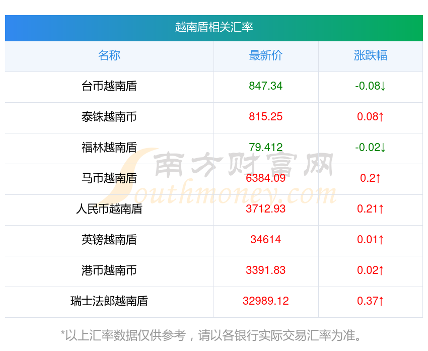 南方財富網(wǎng)為您提供越南盾對福林匯率最新價格詳情。