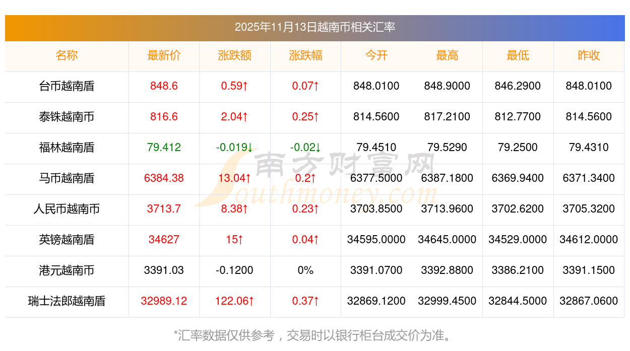 匯率查詢 | 5萬越南幣轉(zhuǎn)換港元匯率計(jì)算表? 11-13