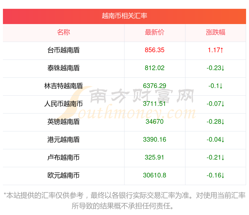 南方財富網(wǎng)為您提供越南幣對烏拉圭比索匯率最新價格詳情。