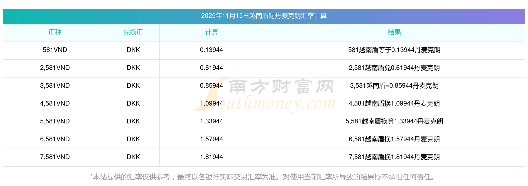 今天匯率更新!2025年11月15日64越南盾兌換丹麥克朗是多少?