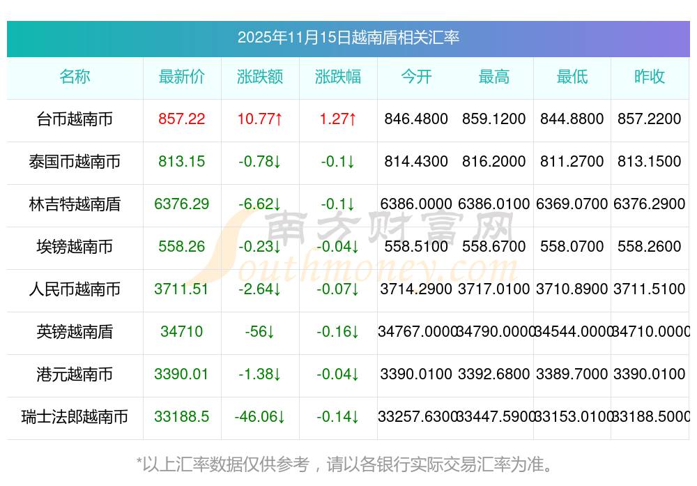 2025年11月15日越南盾相關(guān)匯率查詢(xún)