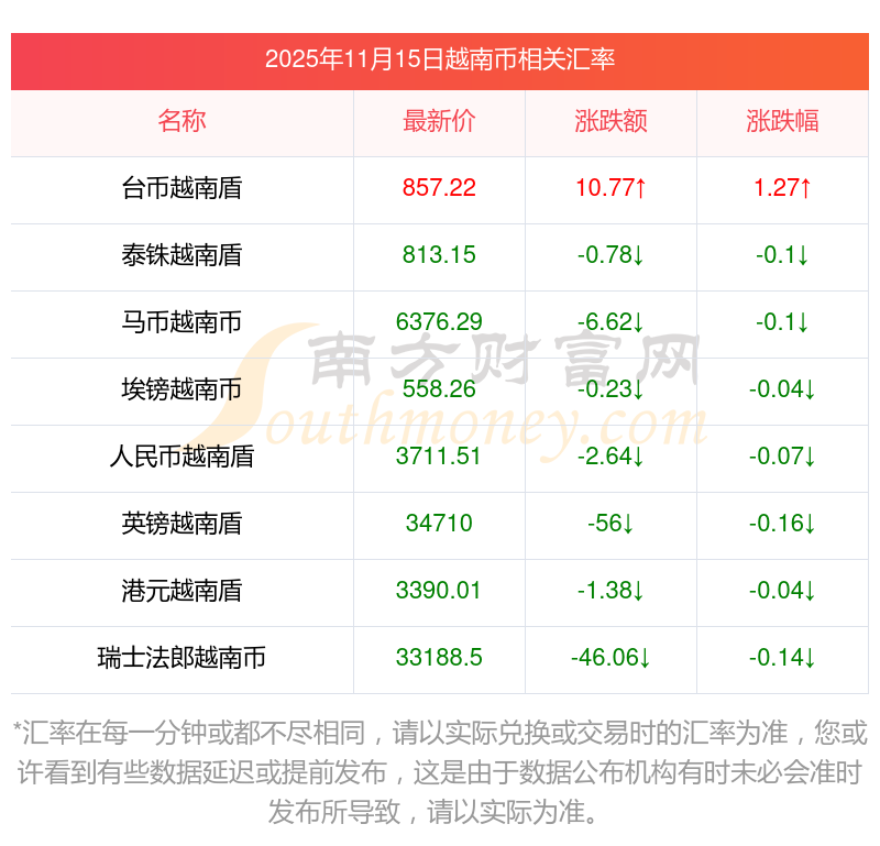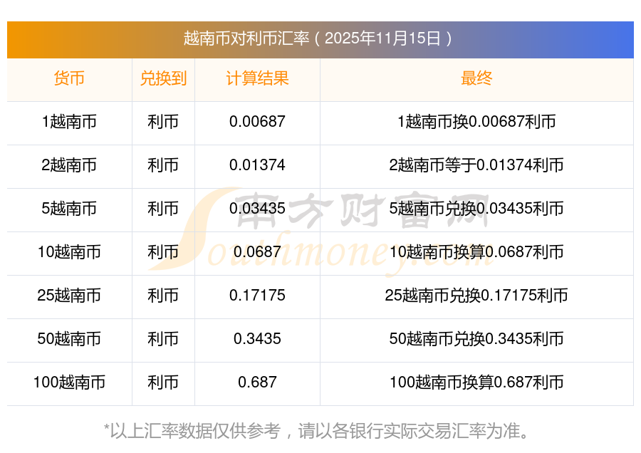 新匯率調(diào)整 今天5越南幣兌換利幣匯率是多少? 2025-11-15
