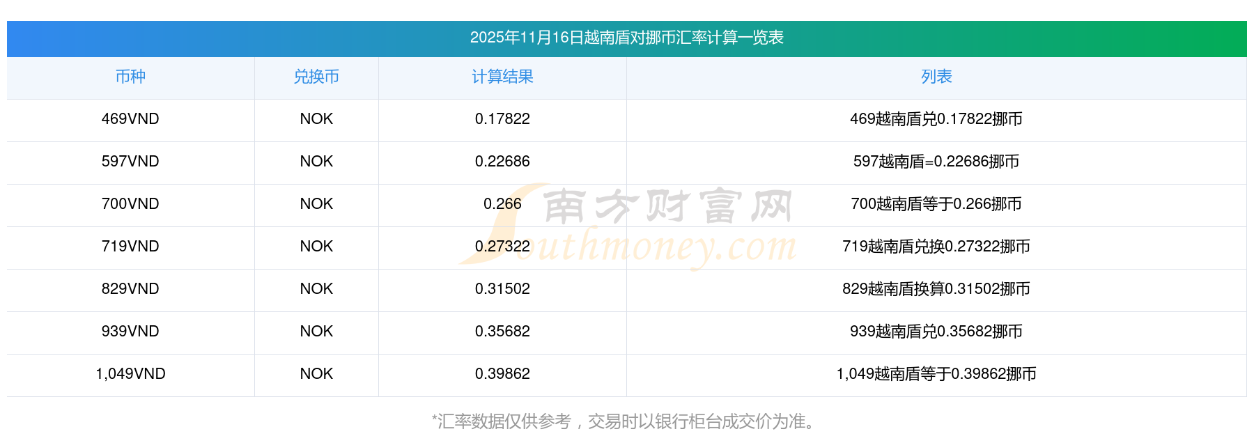 越南盾換算率多少?越南盾換算挪幣又是多少(2025年11月16日)