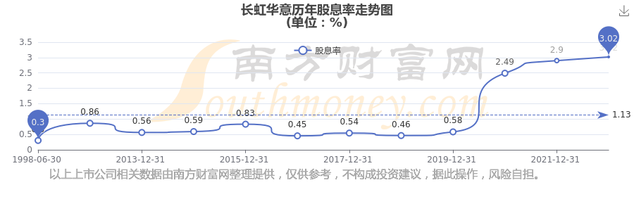 近年長(zhǎng)虹華意年度股息率走勢(shì)如下圖: