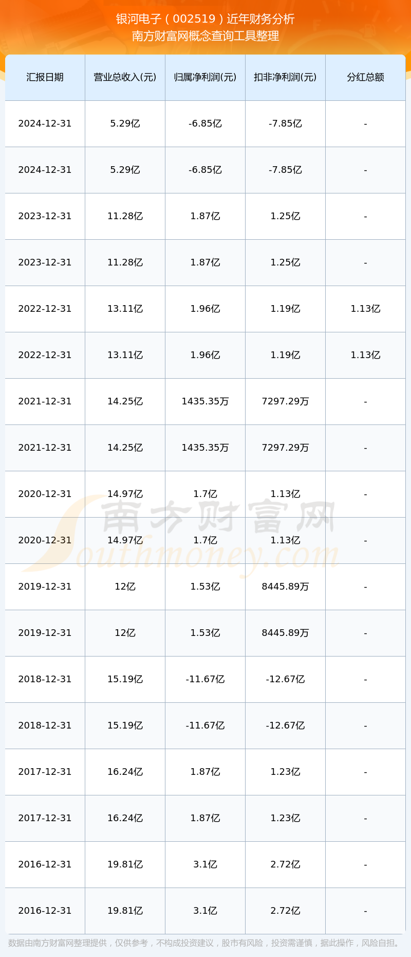 銀河電子公司2024年實(shí)現(xiàn)營(yíng)業(yè)收入5.29億元,同比增長(zhǎng)-53.14%;凈利潤(rùn)-6.85億元,同比增長(zhǎng)-466.46%;毛利率-50.54%。