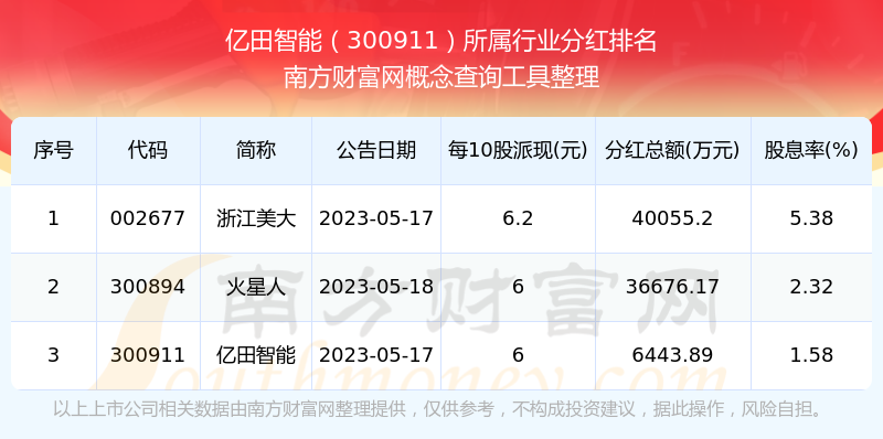 按照南方財(cái)富網(wǎng)趨勢(shì)選股系統(tǒng)統(tǒng)計(jì),億田智能所屬行業(yè)為集成灶行業(yè),集成灶行業(yè)分紅排名情況如下表: