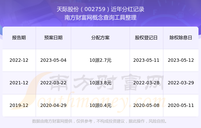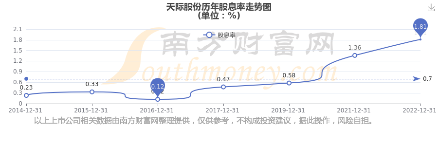 天際股份最新一次公布的分紅方案:10派2.7元。