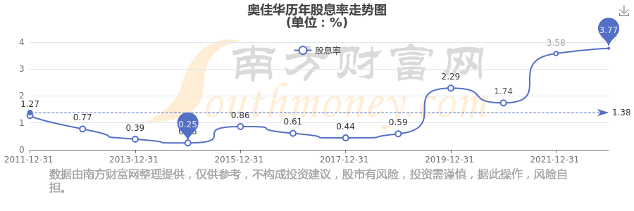 按照南方財富網(wǎng)趨勢選股系統(tǒng)統(tǒng)計,奧佳華所屬行業(yè)為家電行業(yè)行業(yè),家電行業(yè)行業(yè)分紅排名情況如下表: