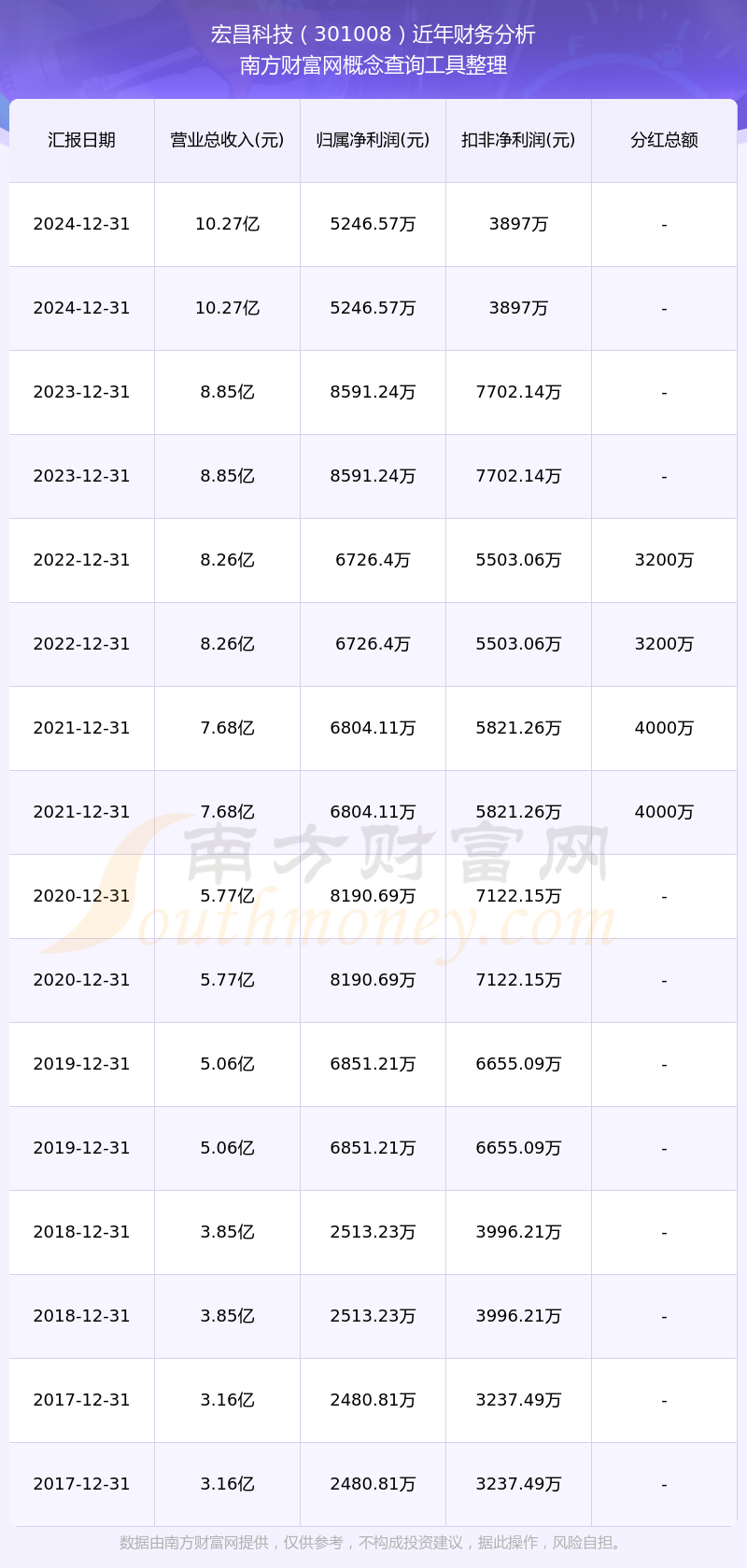 2024年報(bào)顯示,宏昌科技實(shí)現(xiàn)營(yíng)收10.27億,同比增長(zhǎng)16.09%;凈利潤(rùn)5246.57萬,同比增長(zhǎng)-38.93%;毛利率16.35%。