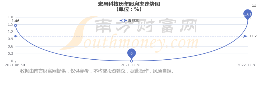 宏昌科技?xì)v年股息率走勢(shì)如下圖:
