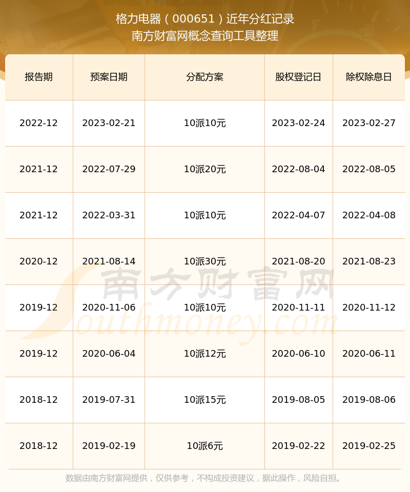 近年格力電器分紅派息情況如下表所示:
