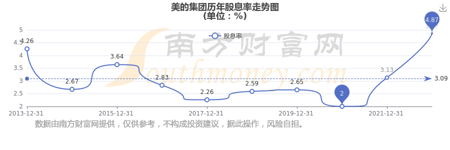 近年美的集團(tuán)年度股息率走勢(shì)如下圖: