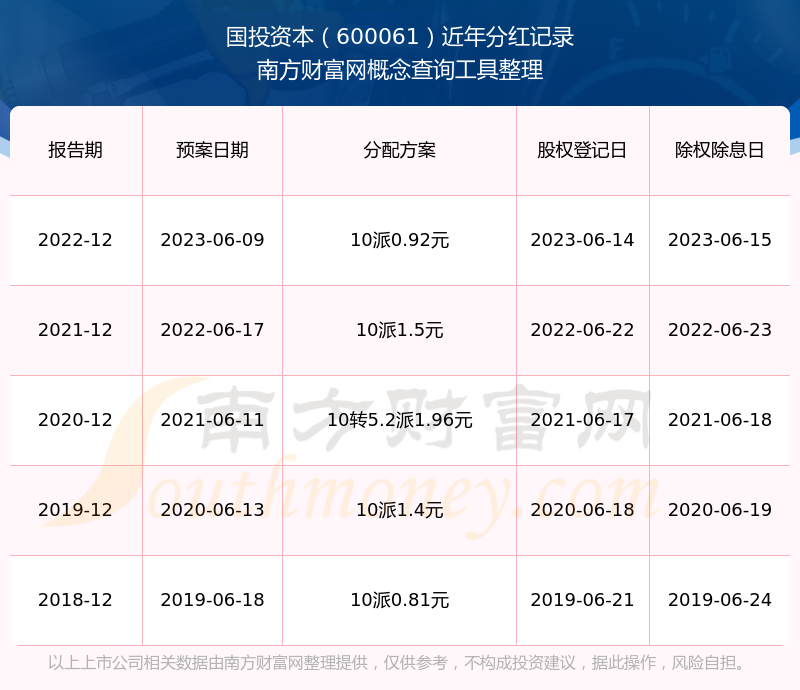 國投資本最新一次公布的分紅方案為10派0.92元。本次權(quán)益分派股權(quán)登記日為2023年6月14日,除權(quán)除息日為2023年6月15日,派息日為2023年6月15日。