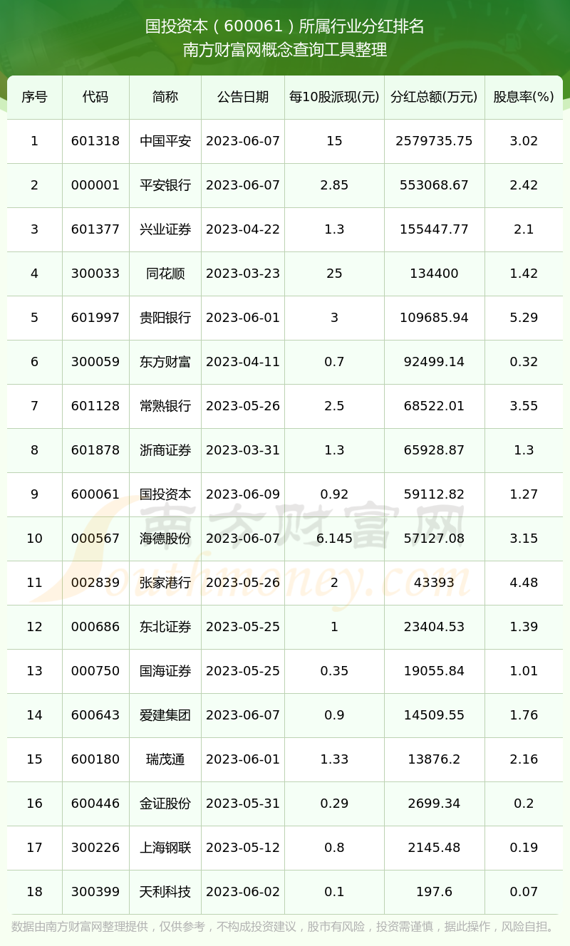 二、國投資本600061行業(yè)分紅排名