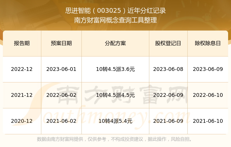 思進智能最新一次公布的分紅方案為10轉(zhuǎn)4.5派3.6元。本次權(quán)益分派股權(quán)登記日為2023年6月8日,除權(quán)除息日為2023年6月9日,派息日為2023年6月9日。