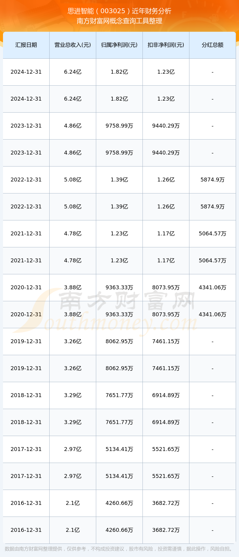 2024年報顯示,思進智能實現(xiàn)營收6.24億,同比增長28.41%;凈利潤1.82億,同比增長86.27%;毛利率37.43%。