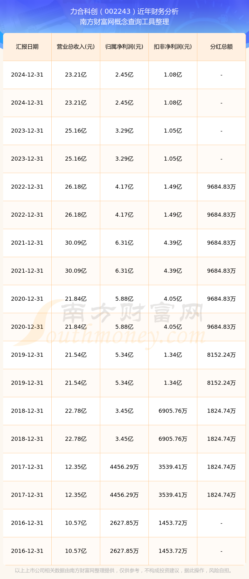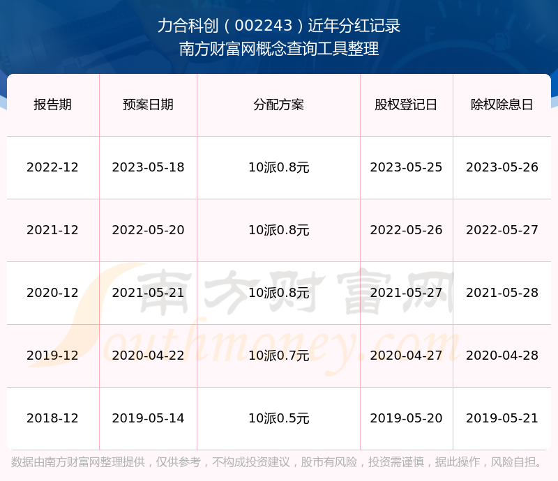 力合科創(chuàng)歷年分紅派息情況如下表所示: