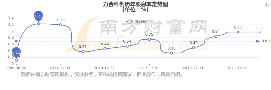 近年力合科創(chuàng)年度股息率走勢如下圖: