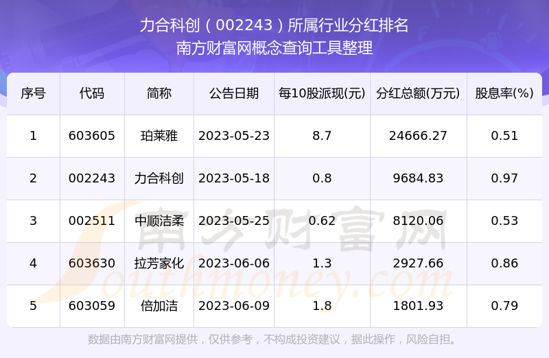 二、力合科創(chuàng)002243行業(yè)分紅排名