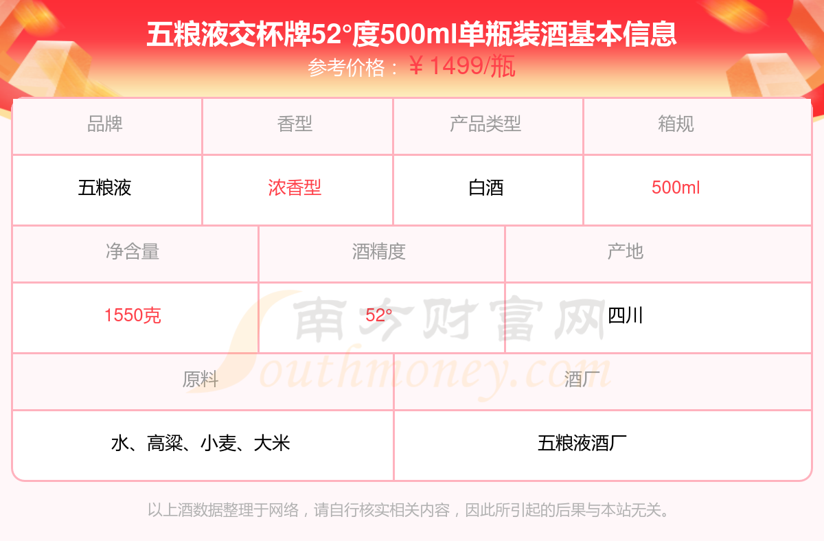五糧液交杯牌52°度500ml單瓶裝基本信息
