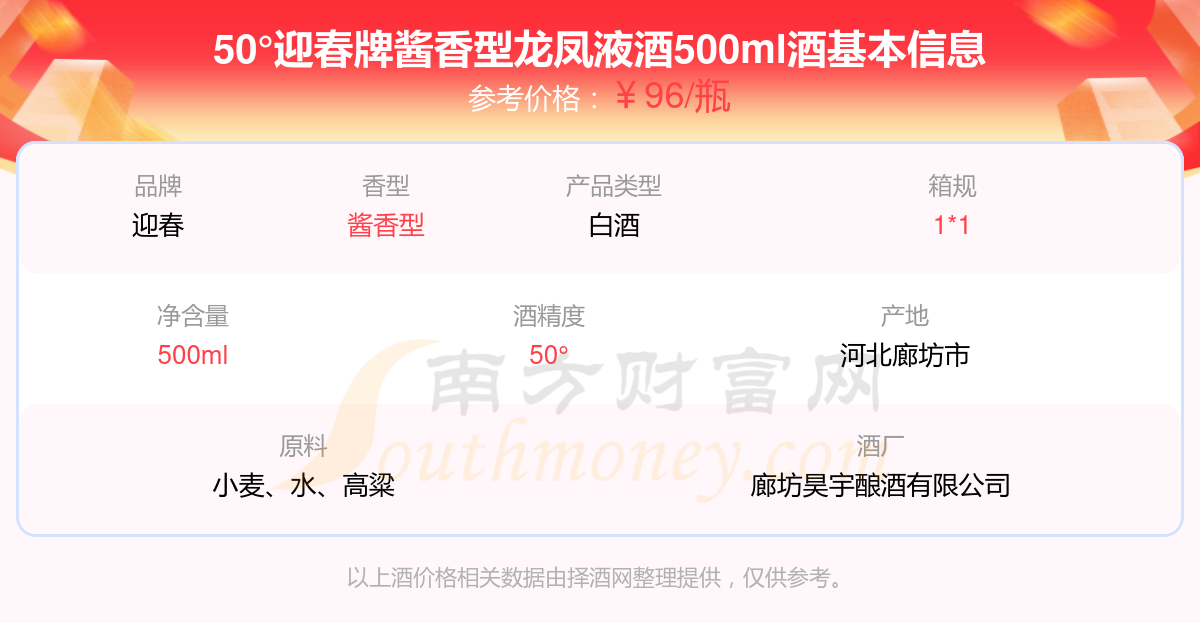 50°迎春牌醬香型龍鳳液酒500ml基本信息