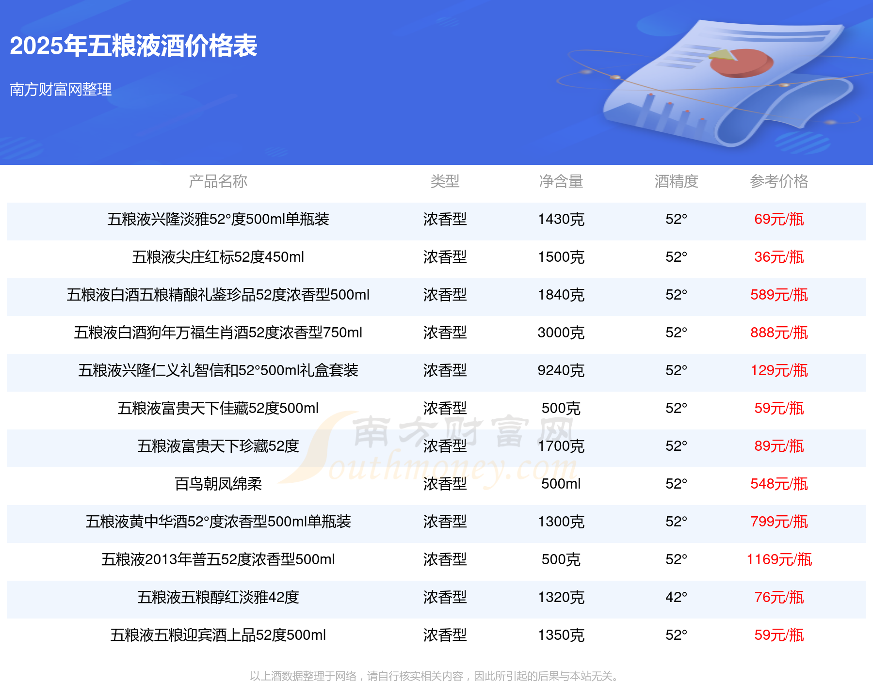 當(dāng)下五糧液酒價(jià)格最高的酒為五糧液百年世博世紀(jì)榮耀紀(jì)念酒60°999ml,參考價(jià)26980元/瓶,而五糧液酒價(jià)格最低的是五糧液干一杯小瓶46度,參考價(jià)16元/瓶,價(jià)格高低差為26964元/瓶。