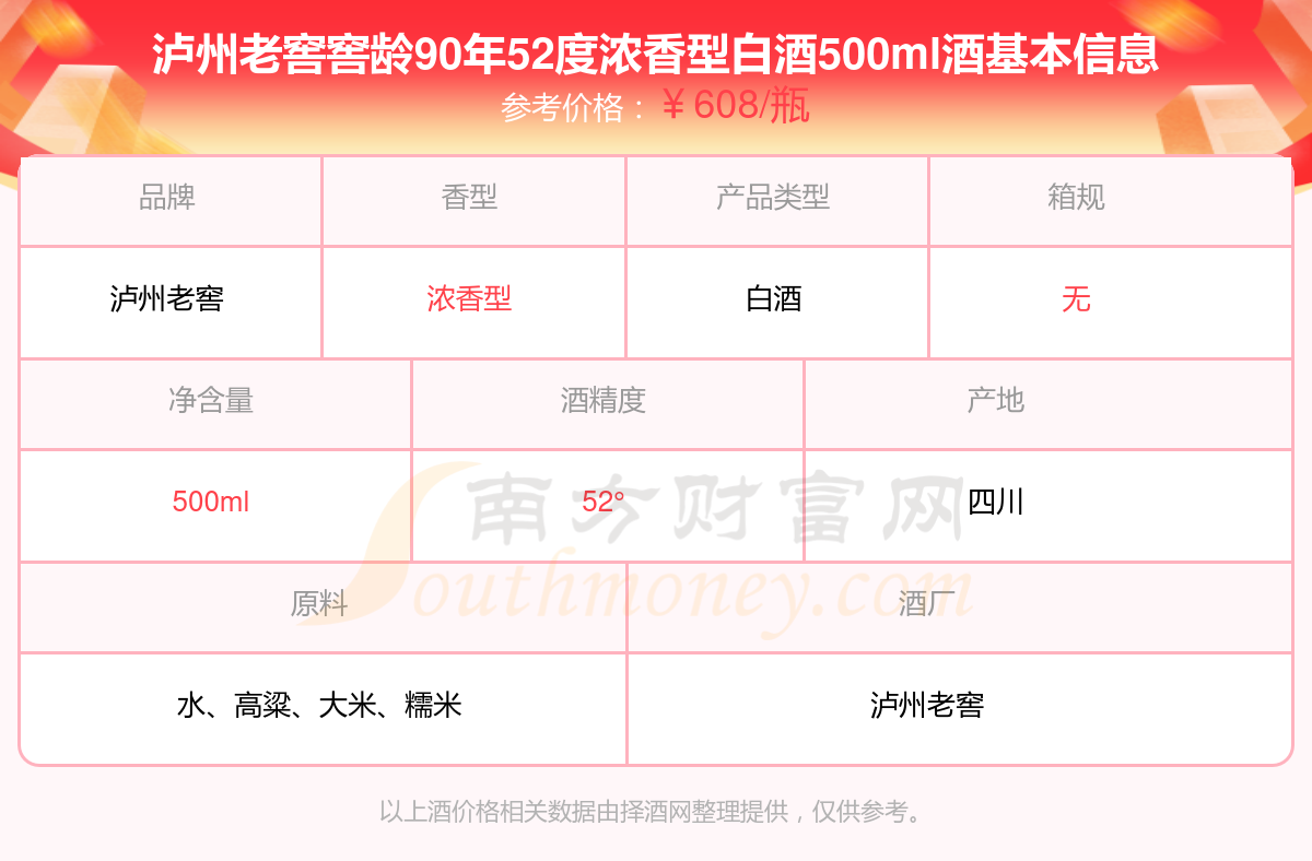 瀘州老窖窖齡90年52度濃香型白酒500ml基本信息