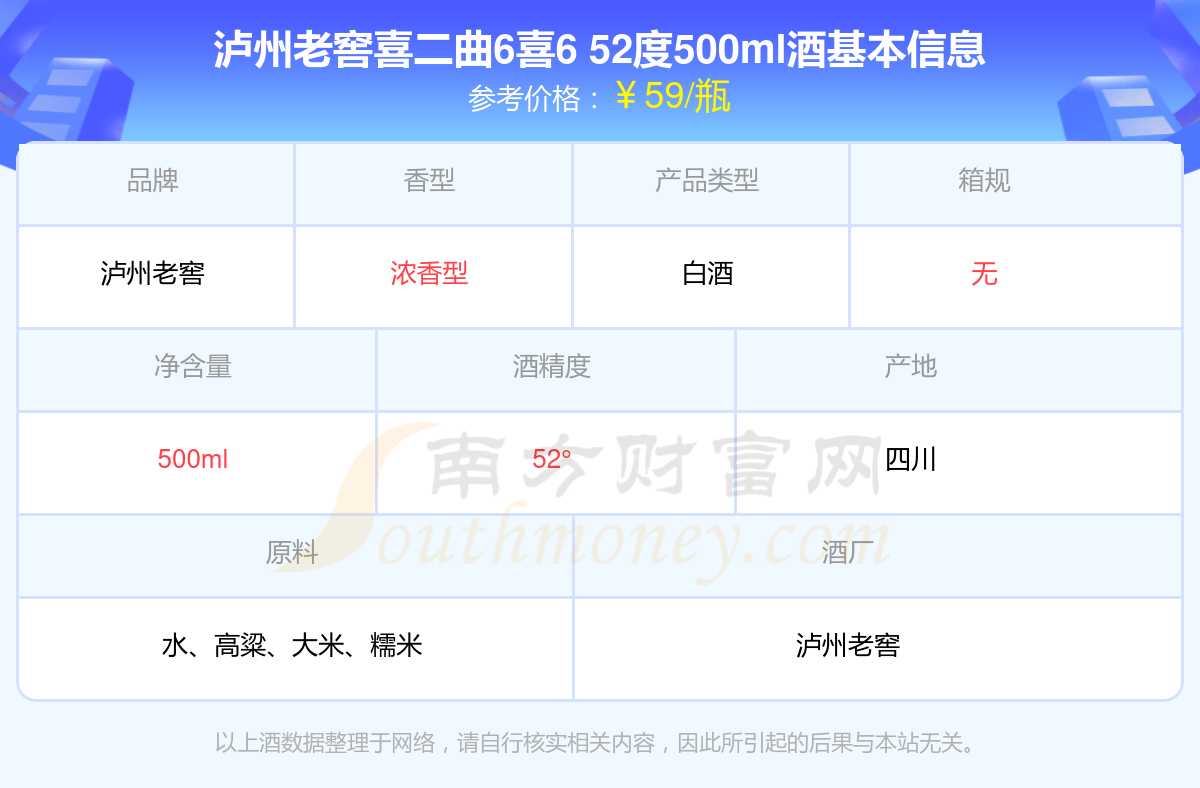 瀘州老窖喜二曲6喜6 52度500ml基本信息
