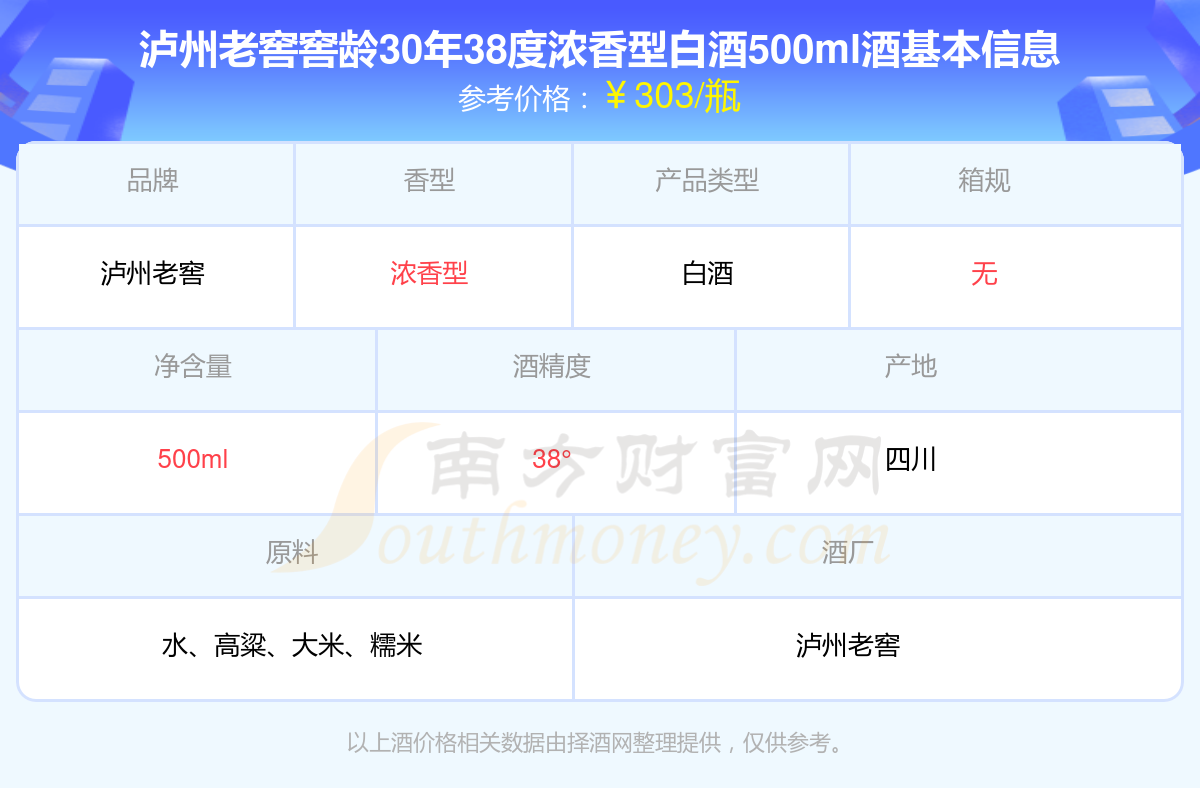 瀘州老窖窖齡30年38度濃香型白酒500ml基本信息